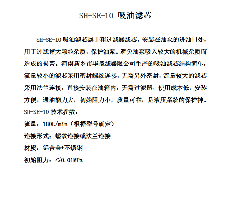 韓國SHC吸油濾芯SH-SE-10