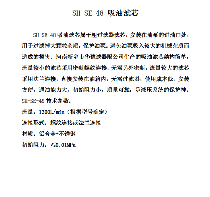 韓國(guó)SHC濾芯SH-SE-48吸油濾芯