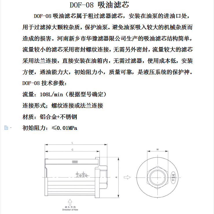 華豫濾器供應(yīng)SHC吸油濾芯DOF-08