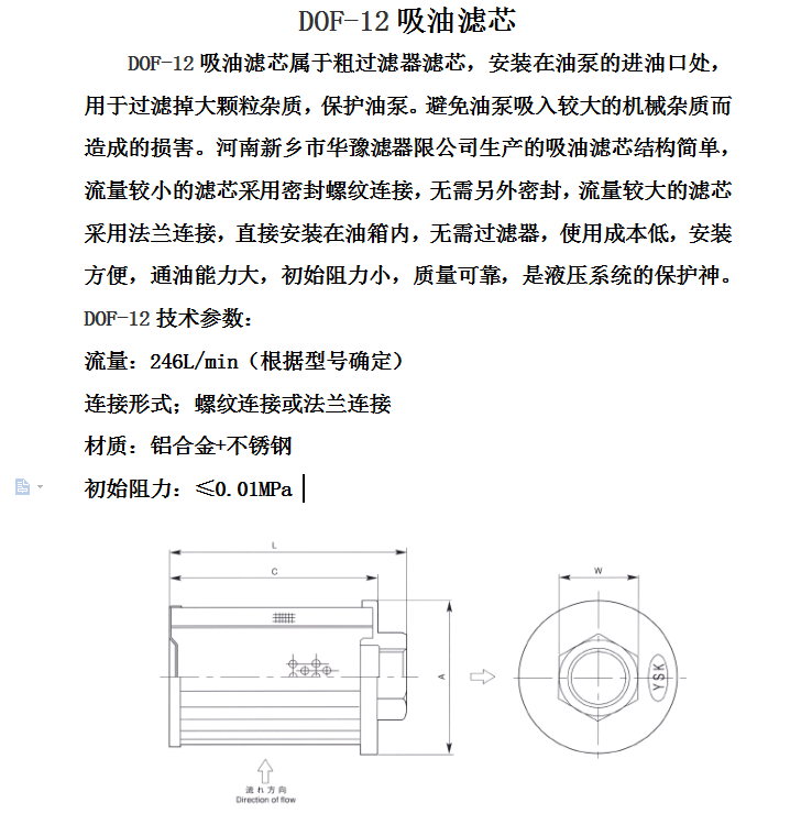 華豫濾器供應SHC濾芯DOF-12吸油濾芯