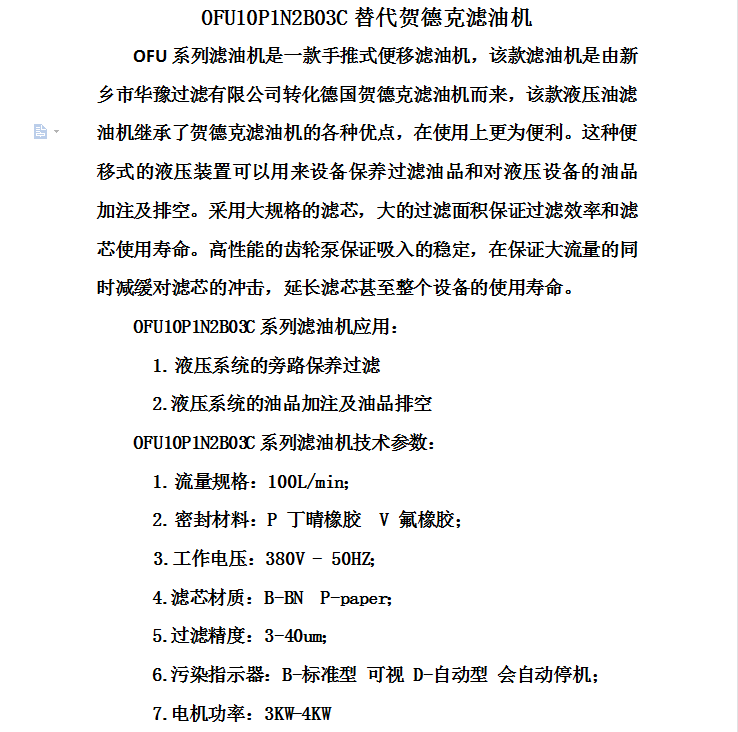 精密濾油機OFU10P1N2B03C