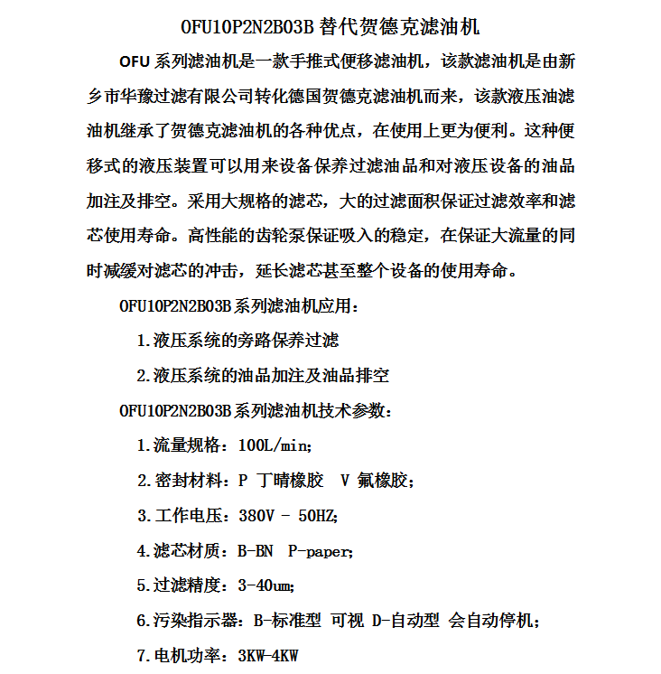 精密濾油機OFU10P2N2B03B
