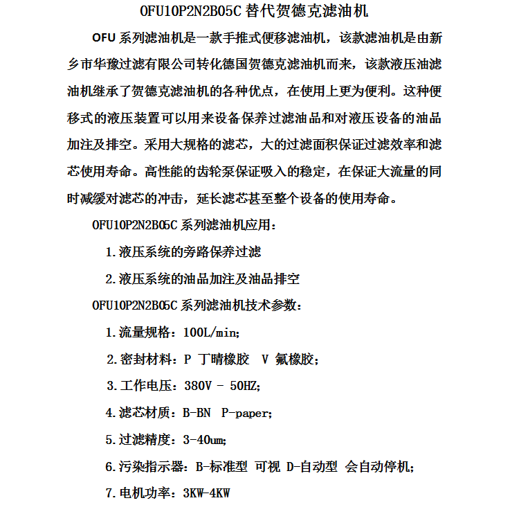 賀德克移動式濾油機OFU10P2N2B05C