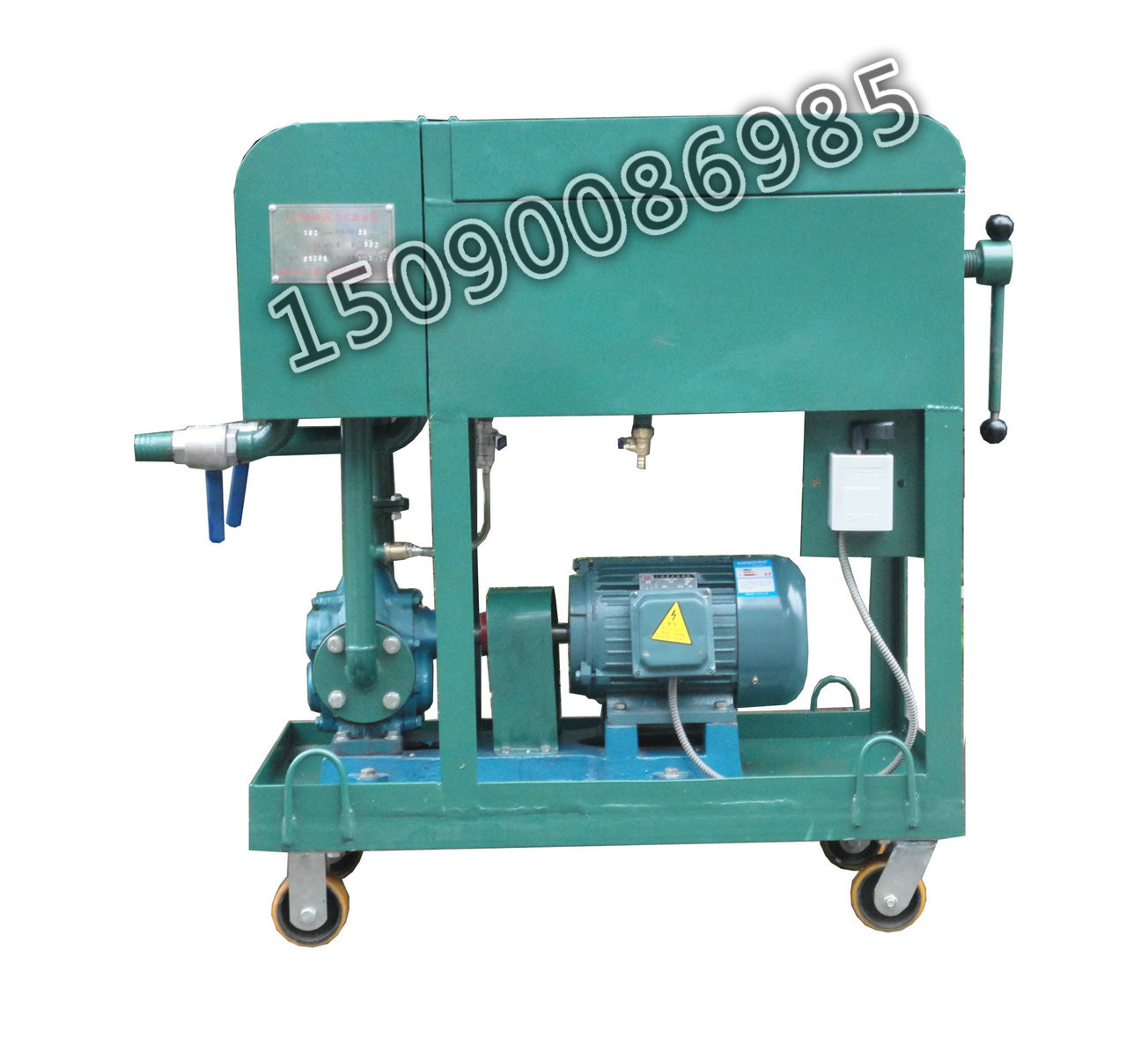 板框濾油機結構,是由齒輪泵、板框濾床底盤、電氣裝置、安全閥、油樣閥等部件組成;由電動機直接帶動齒輪轉動將油池中油液吸入初濾器、進入油泵,在齒輪泵的壓力下,將油液輸入濾床過濾,最后匯集到出油口輸出。安全閥是該機的保證裝置,能自動控制壓力,保證設備安全;回油閥能控制油盤中的油面高度民主,防止油液從油盤中溢出;油樣閥供取油液標樣之用。