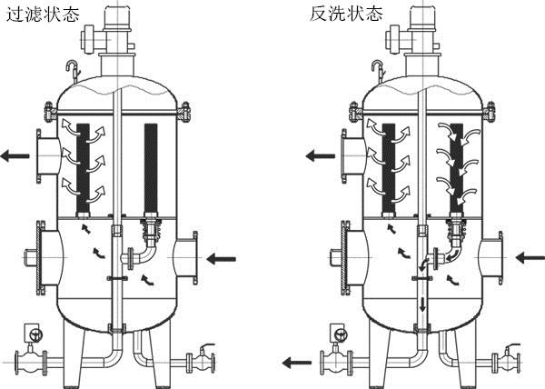 電機(jī)驅(qū)動(dòng)型吸污式過濾器原理同上,只是集污器由電機(jī)驅(qū)動(dòng)。