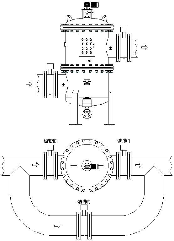 多柱式反沖洗過濾器,全自動(dòng)反沖洗過濾器安裝示例圖